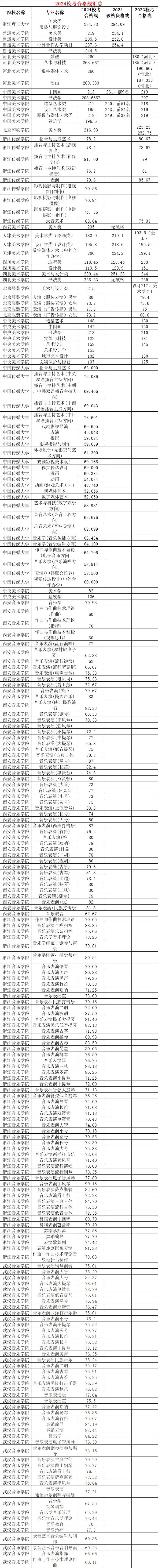 2024校考部分院校已公布专业合格线汇总
