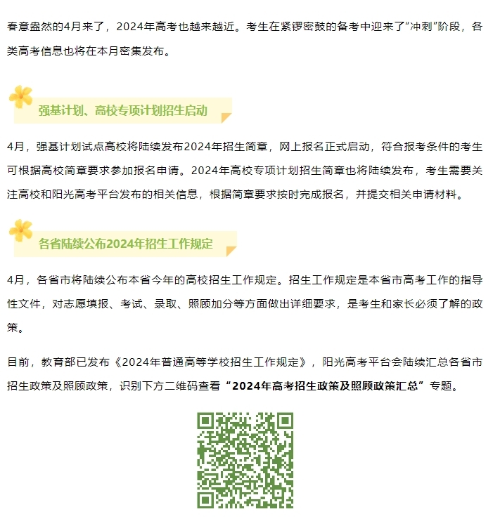 2024年4月高考热点:强基计划、高校专项计划报名启动,各省高招规定陆续公布