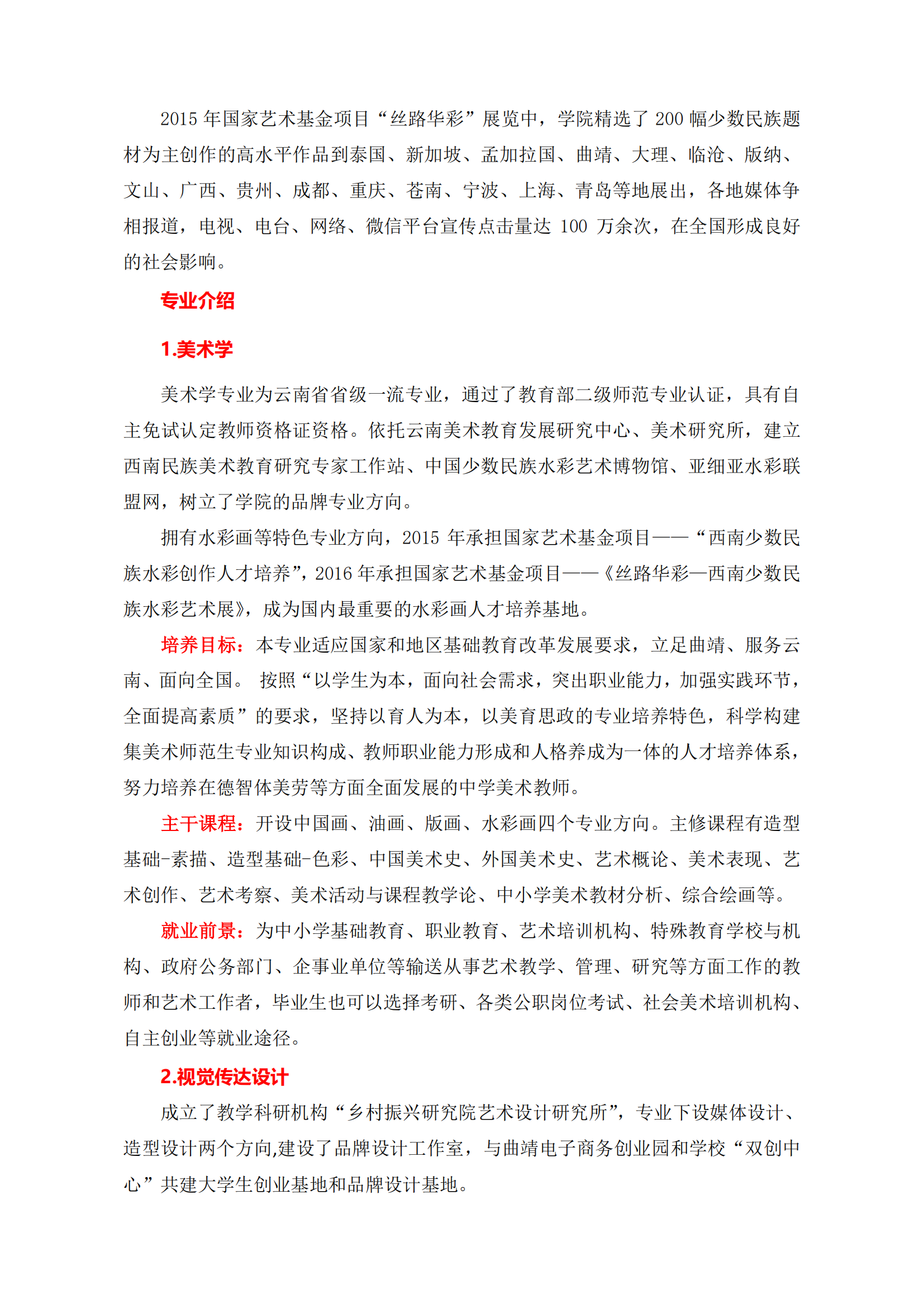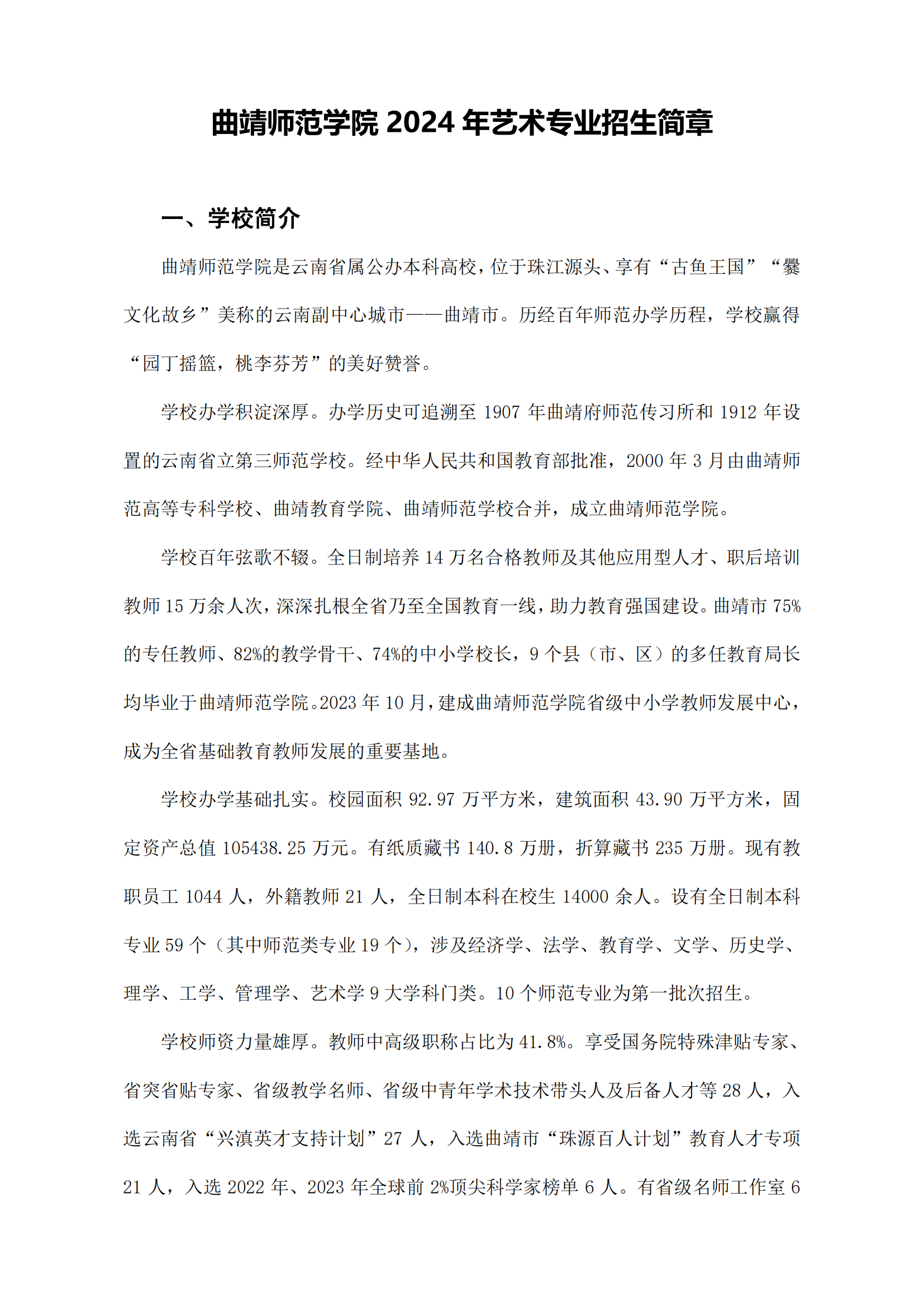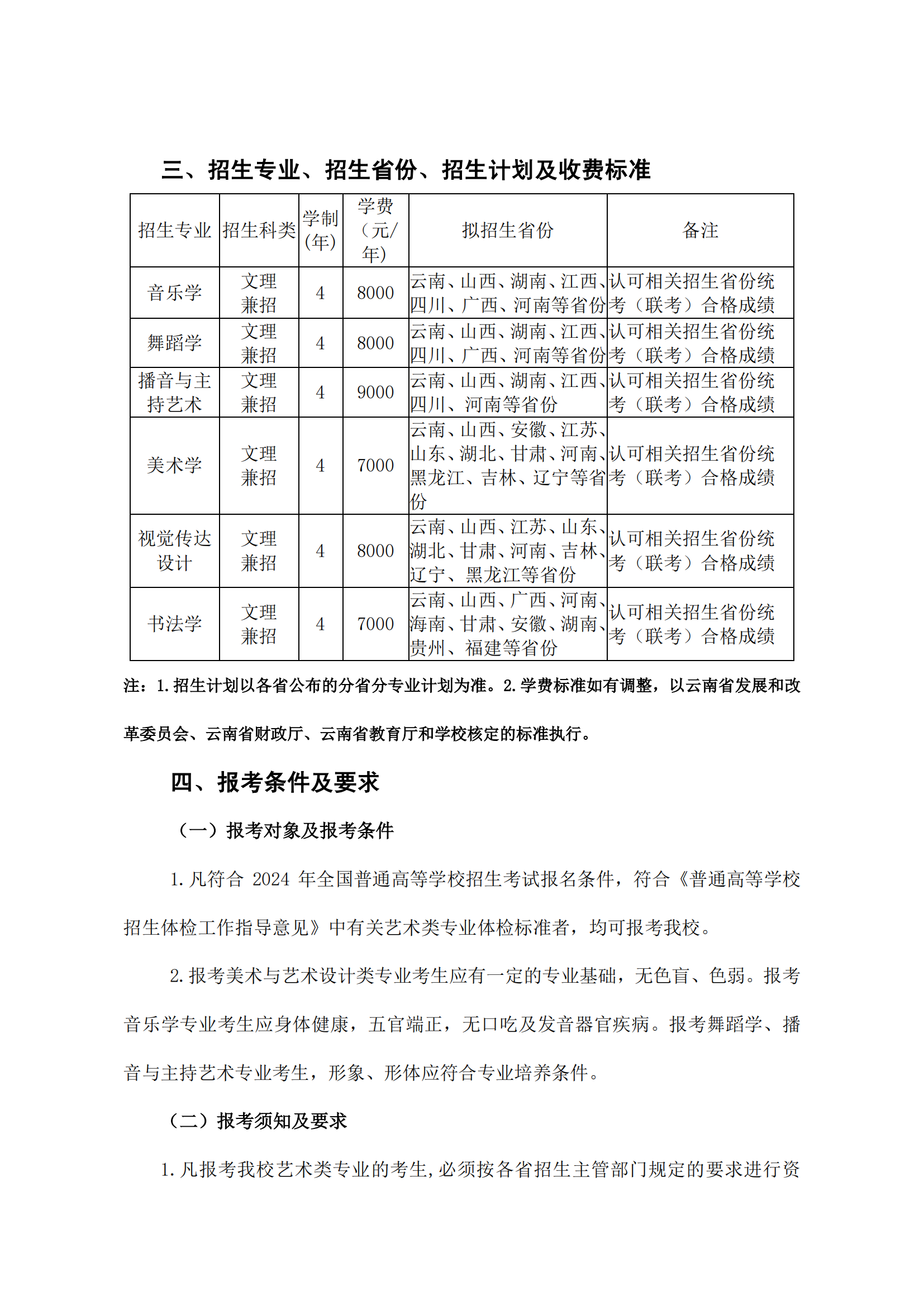 曲靖师范学院2024年艺术专业招生简章
