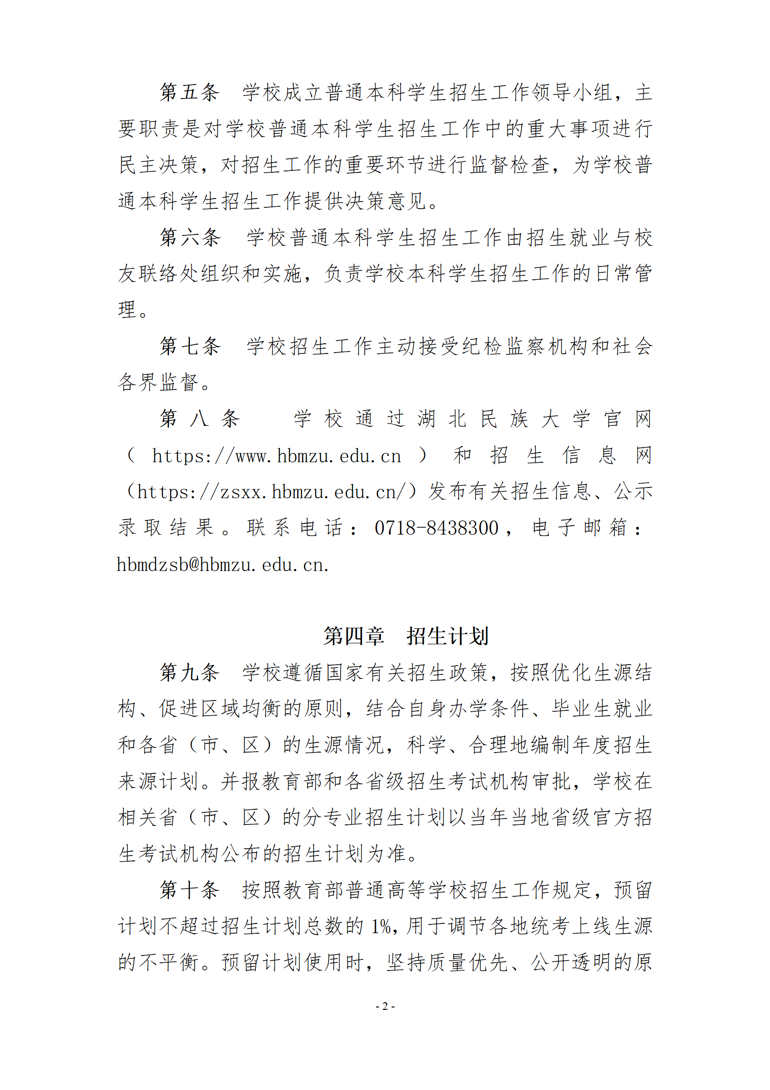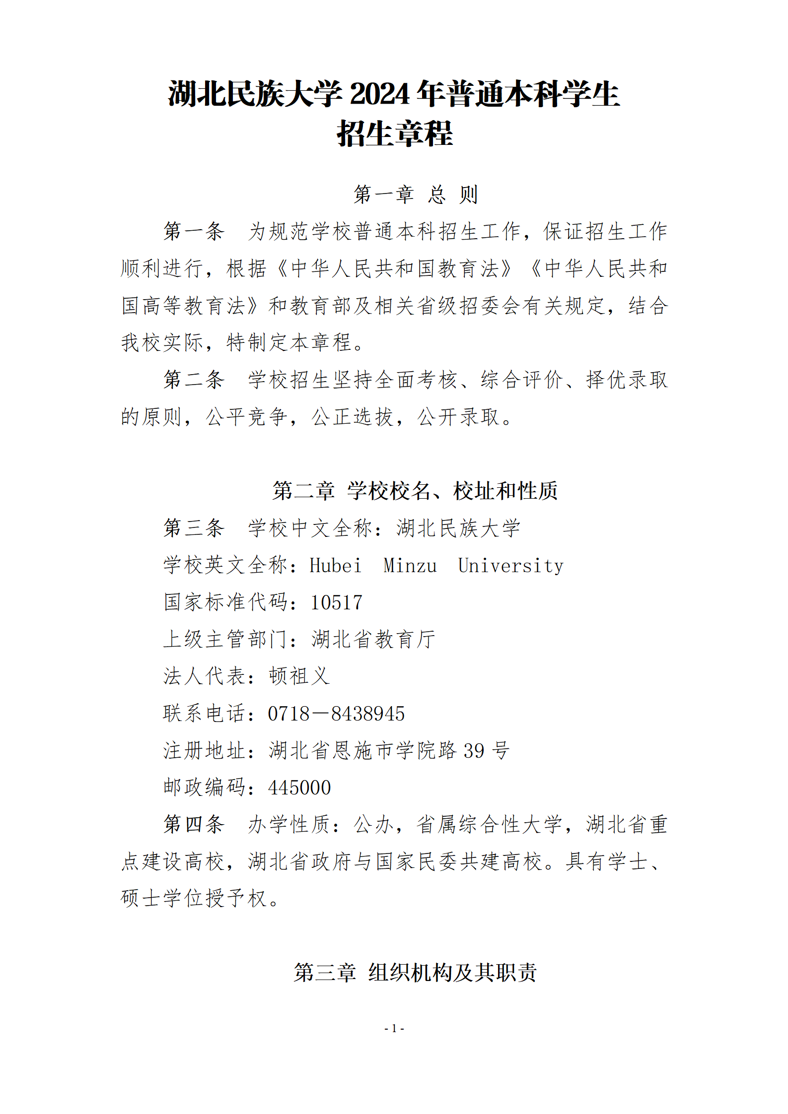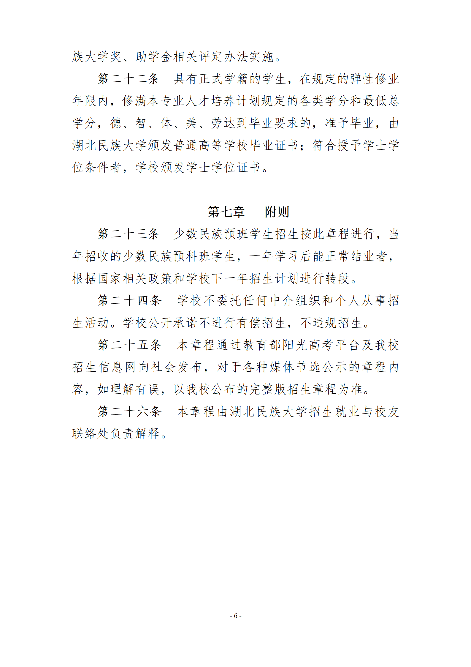湖北民族大学2024年普通本科学生招生章程