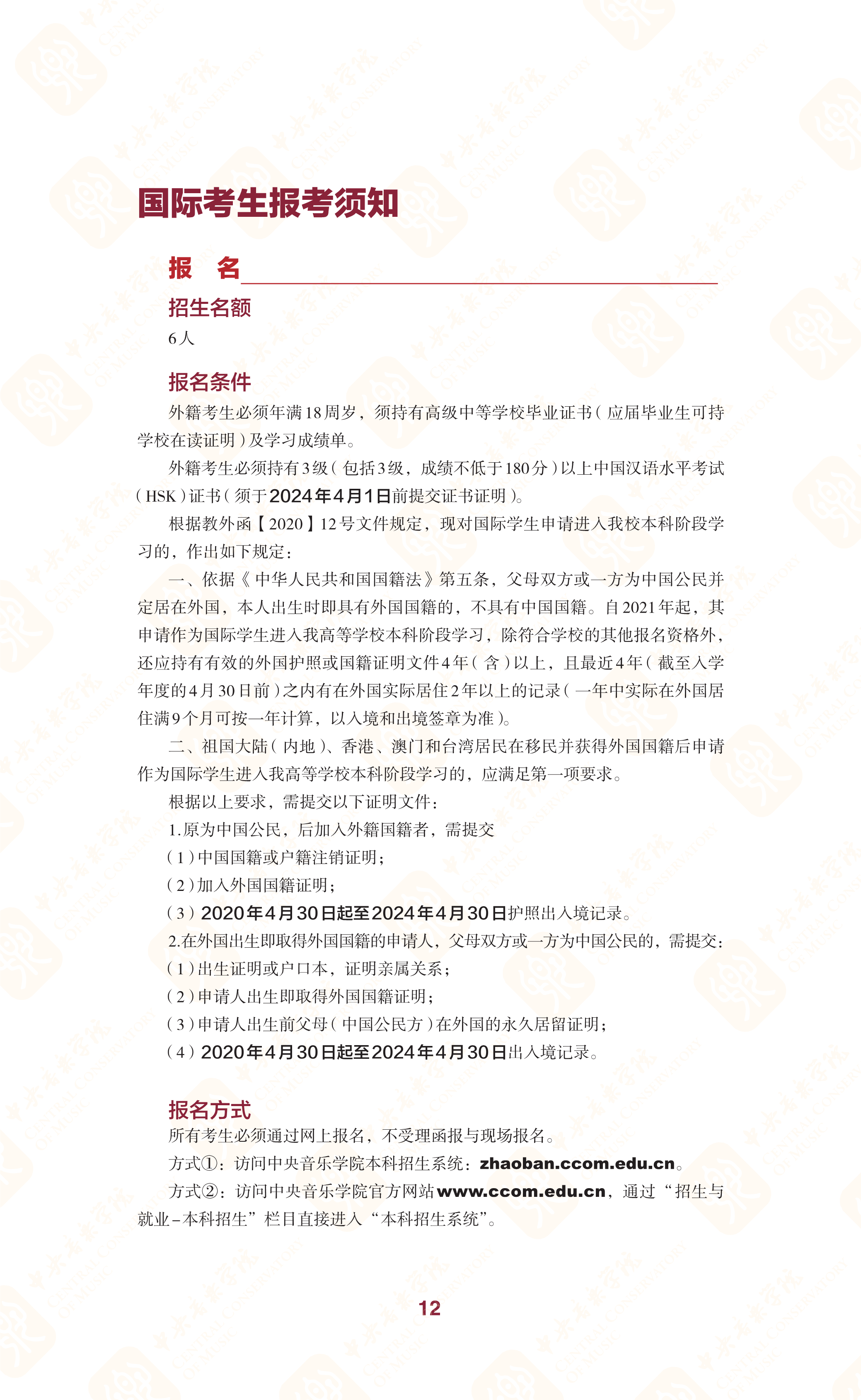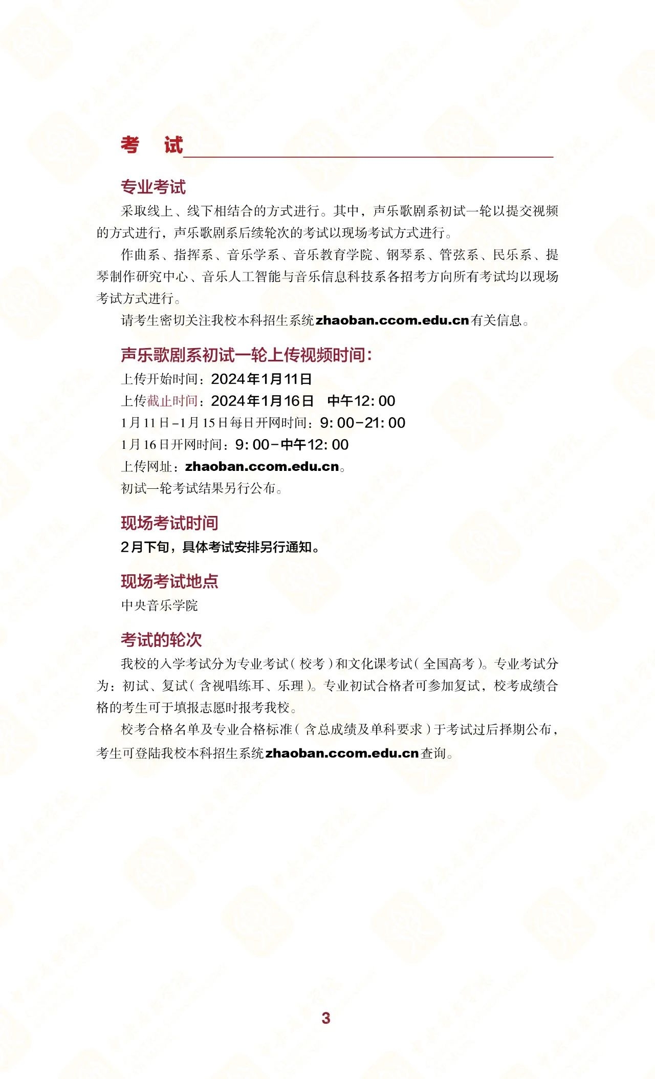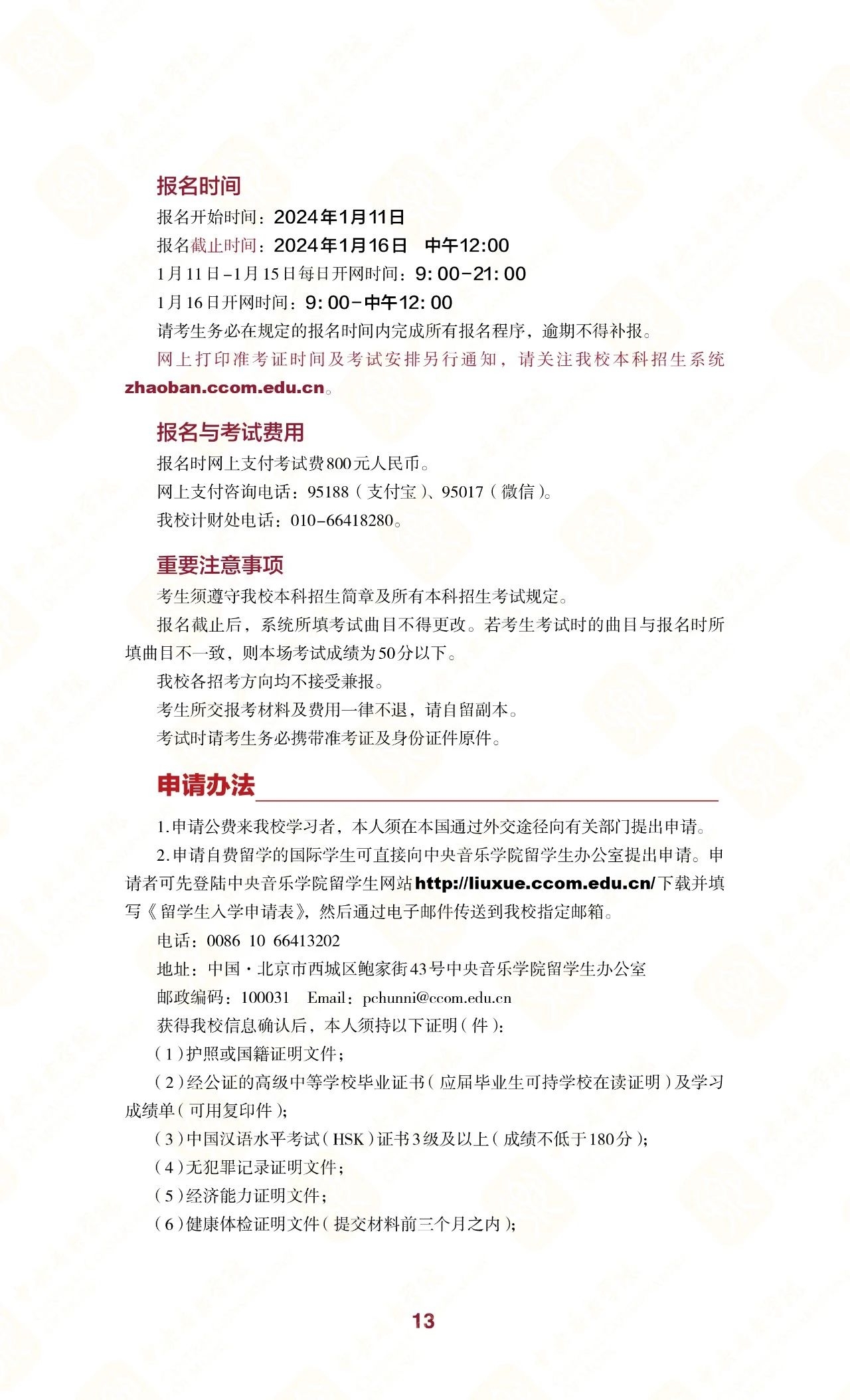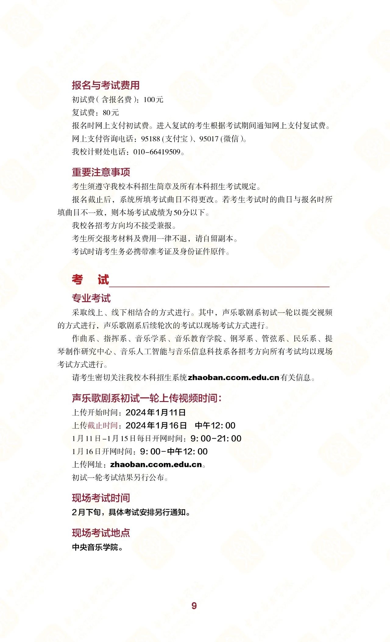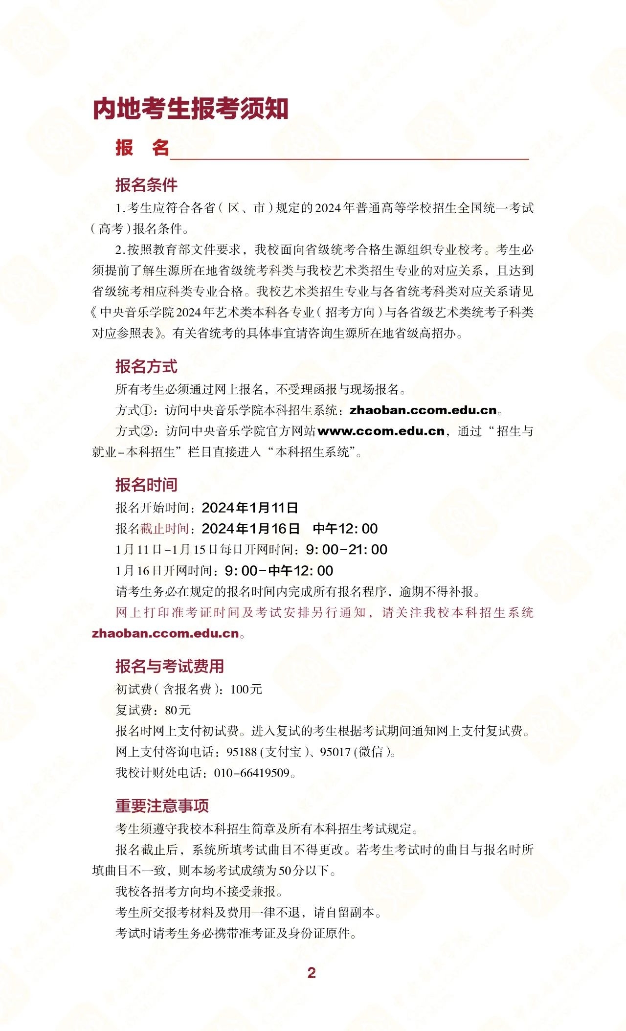 中央音乐学院2024年本科招生简章