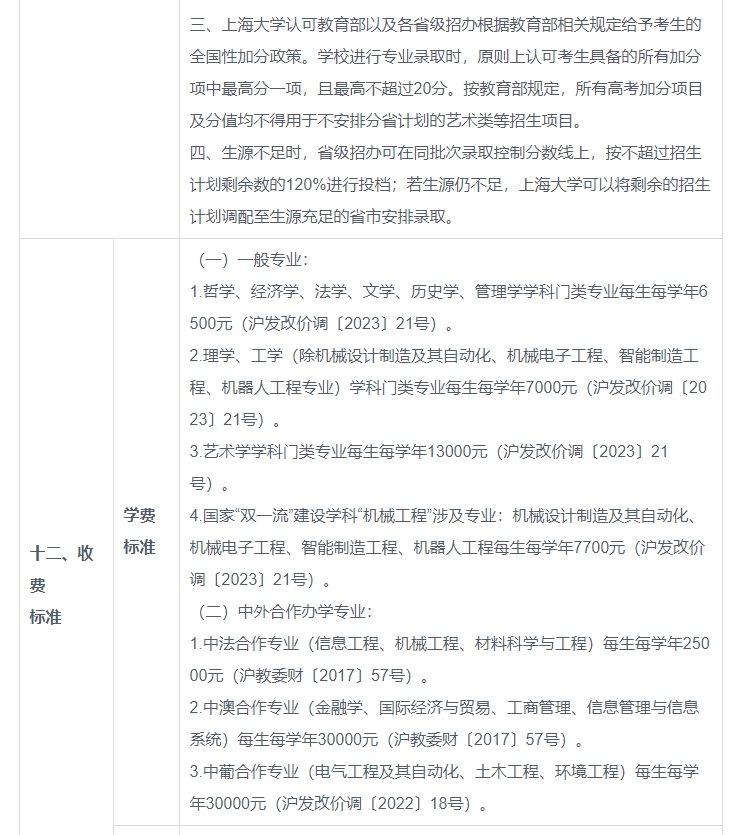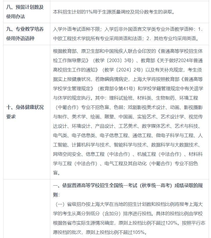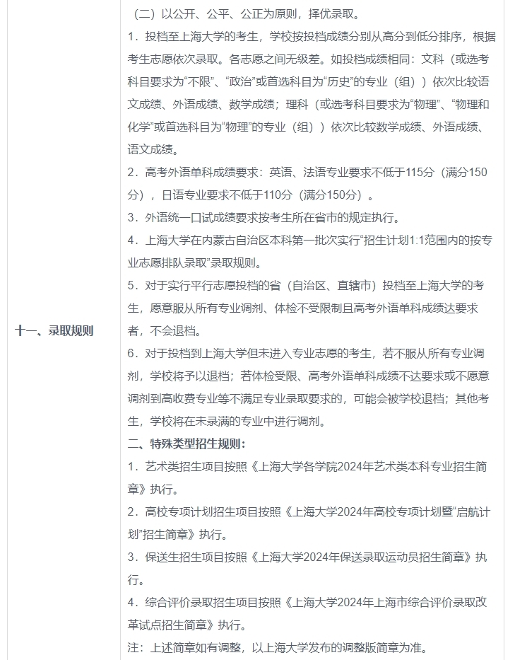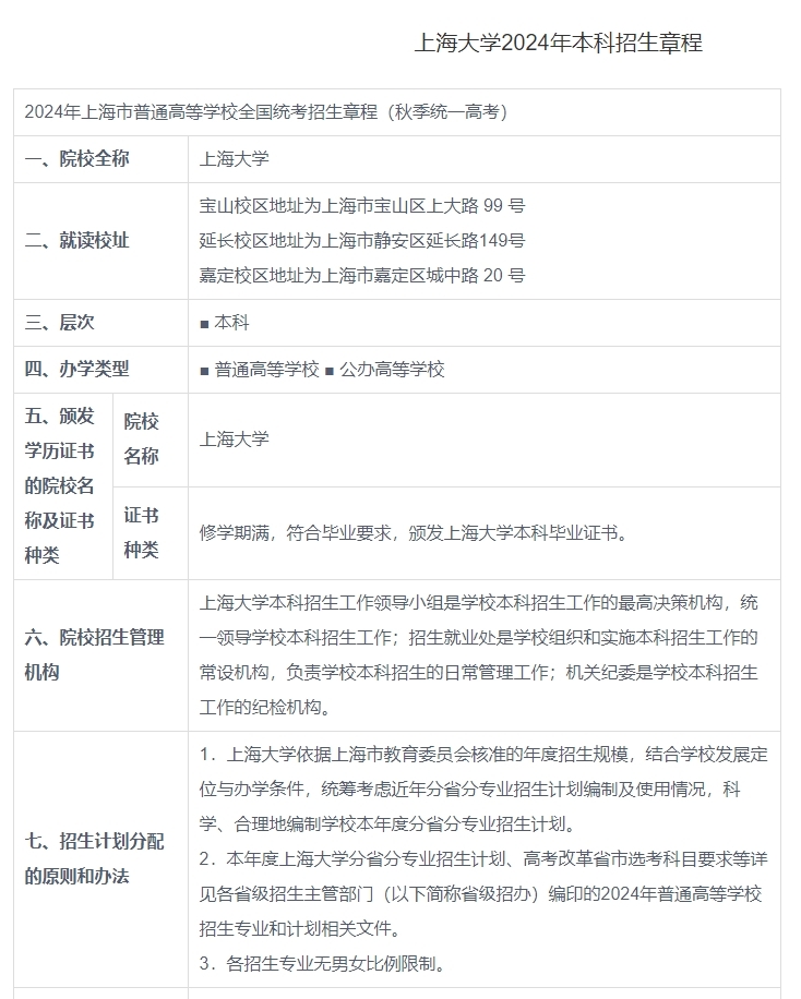上海大学2024年本科招生章程