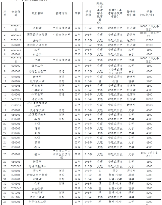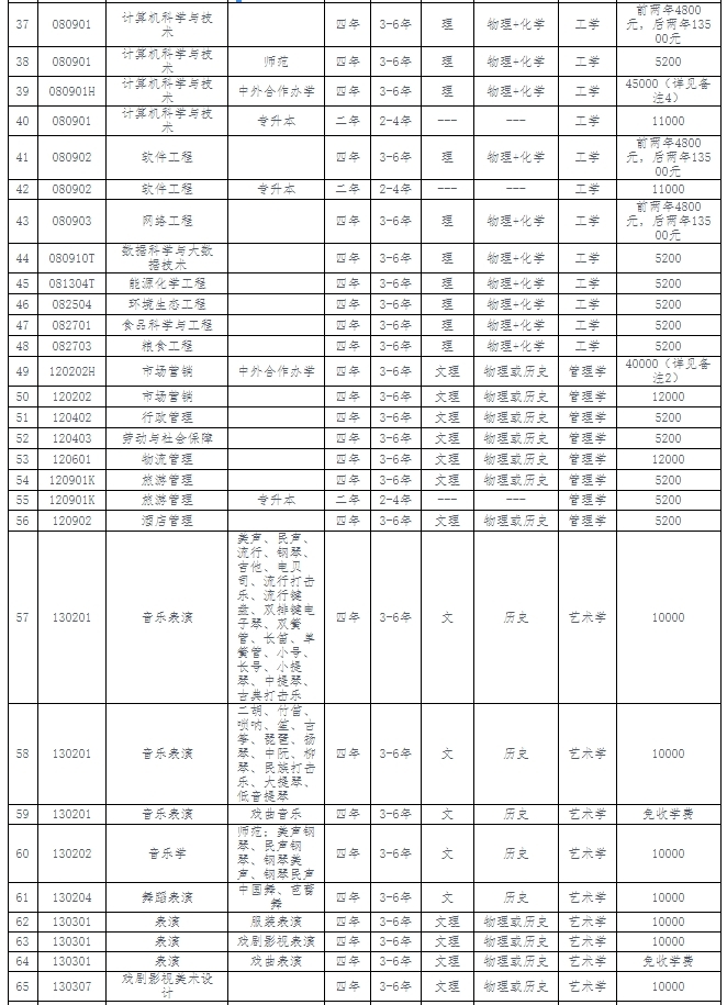 注:1.学校在各省具体招生专业、招考方向(含声乐器乐种类)、招生科类,以各省招考部门公布的招生计划为准。