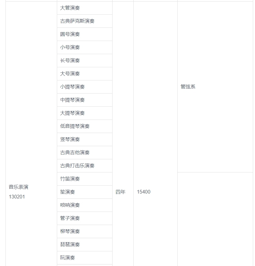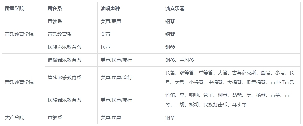 6.报考我院音乐学(四年制)专业的考生,其演唱声种及演奏乐器具体要求详见如下:
