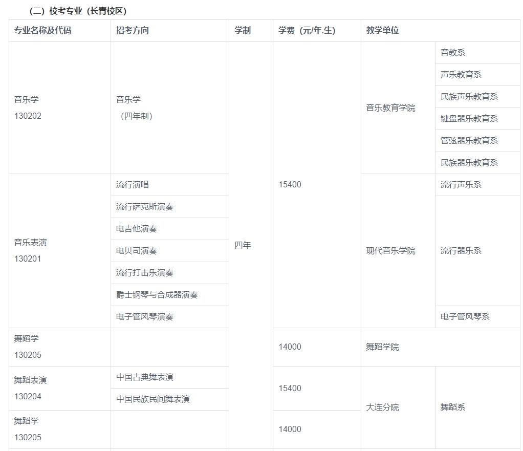 4.招生专业:音乐学(四年制)、音乐表演、舞蹈表演、舞蹈学。办学地点:大连分院目前在沈阳办学。大连分院音教系、声乐系、钢琴系、管弦系、民乐系新生就读地点为三好校区,大连分院舞蹈系新生就读地点为长青校区。