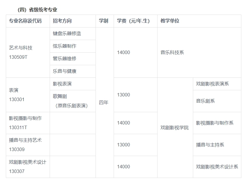 2.招生专业:艺术与科技、表演、播音与主持艺术、广播电视编导、影视摄影与制作、戏剧影视文学、戏剧影视美术设计、音乐表演、音乐学(四年制)、舞蹈学、音乐表演(中外合作办学)。办学地点:长青校区,地址为沈阳市浑南区文汇街18号。